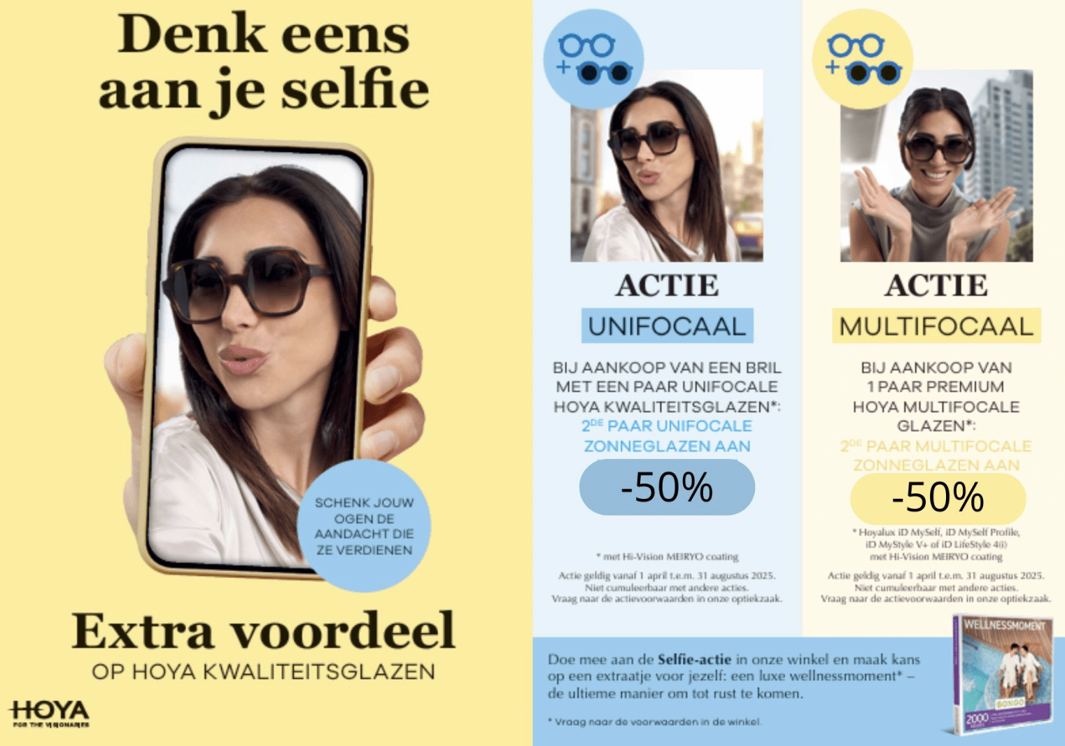 -50% korting op een 2e paar (zonne-)glazen bij aankoop van een bril met een paar Hoya glazen.